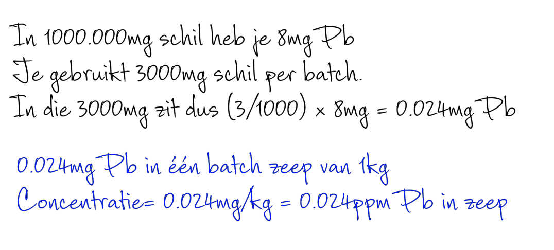 Pb analyse resultaat: 8ppm → 8mg/1000000mg